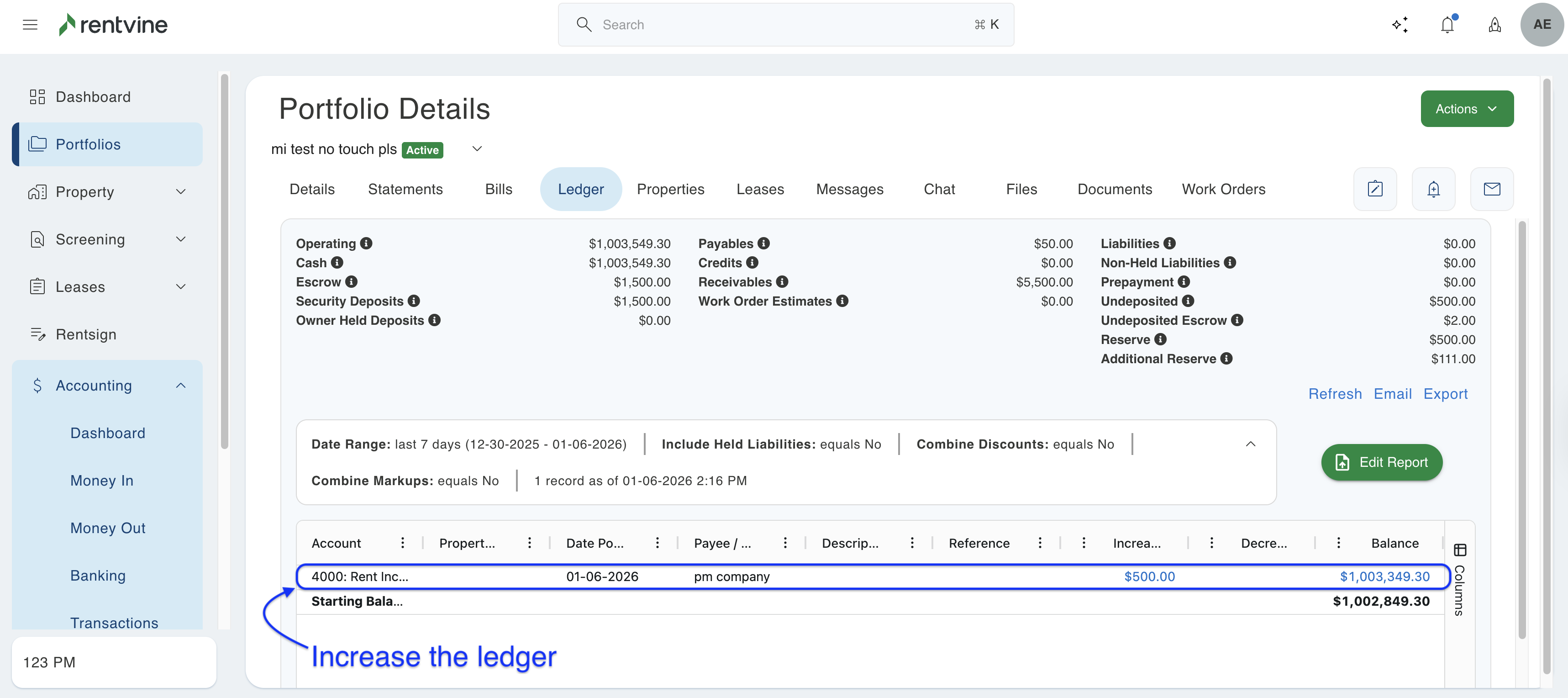 - Once this is done, you will notice that the portfolio's operating balance will now be increased by this amount.