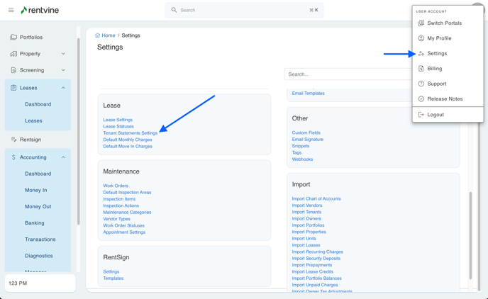- Go to your Global Settings > Lease > Tenant Statement Settings