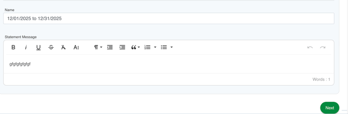 Finally, you’ll see a Statement Message field. Here you can add a message that will appear on each tenant statement. You can include hotfields, and if you’d like, you can also use Snippets.