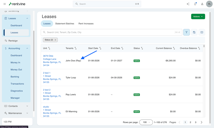 - In Rentvine, you can run Tenant Statements in two different ways.