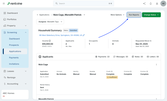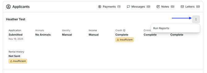 You can also select the ellipse button ( ⋮ the three dots ) to run reports for an individual applicant.