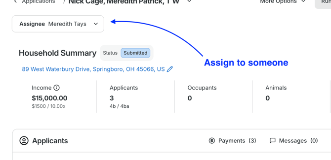 - Setting an Assignee allows your team to know exactly who is responsible for the application at any point during the screening process.