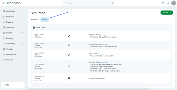 - This same screen comes with an Activity Tab, for anything that occurs for this specific Pod, such as things like if a portfolio was added, deleted, users being added, or deleted.