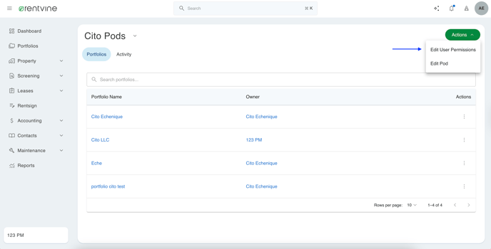 You can think of Pods as a way to group portfolios together and then assign users to those groups. Once a user is assigned to a Pod, their access is restricted to only the portfolios in that Pod, ensuring clean, relevant visibility and streamlined workflows tailored to their role. - For example, without a Pod, users see all units, leases, owners, bills/transactions, and work orders in the system.