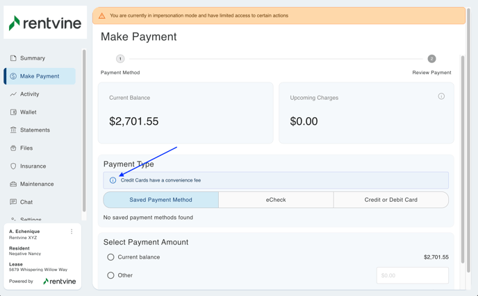 - Payment Instructions - This will be a blue banner under the Payment Type