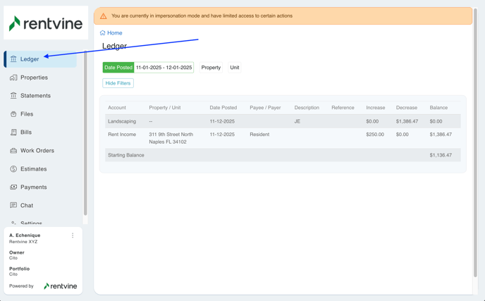 If this is toggled to No, this means the owner will not see the Ledger Tab, and it will entirely disappear from the Users portal.