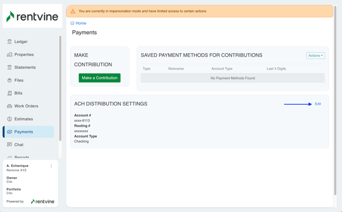 - Allow Manage ACH - This toggle allows the Owner can manage their Distribution Settings and where funds are sent