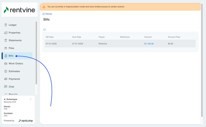 If this is toggled to No, this means the owner will not see the Bills Tab, and it will entirely disappear from the Users portal