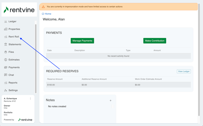 If this is toggled to No, this means the owner will not see the Rent Roll Tab, and it will entirely disappear from the Users portal.