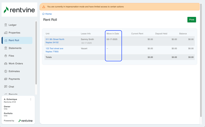 - Show Move In Dates - This allows the Owner to see the Move In Date on the Rent Roll Tab