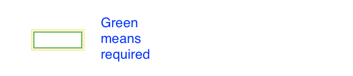 Fields/boxes that are required will have a green border around them. Fields/Boxes that are not required will have a yellow box around them. Please take a look at the screenshots above as a guide.