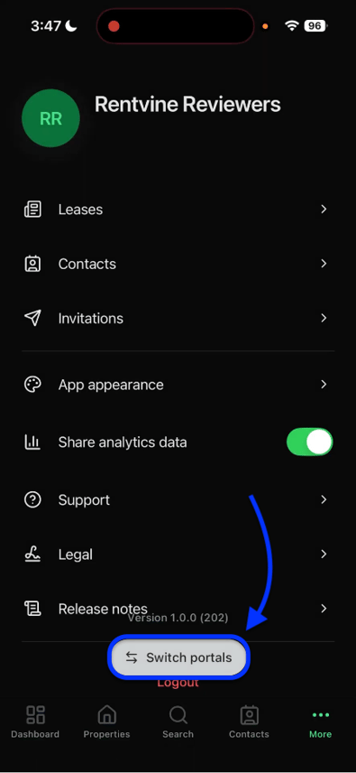 - If you have multiple portals tied to one email, you can also switch between portals here