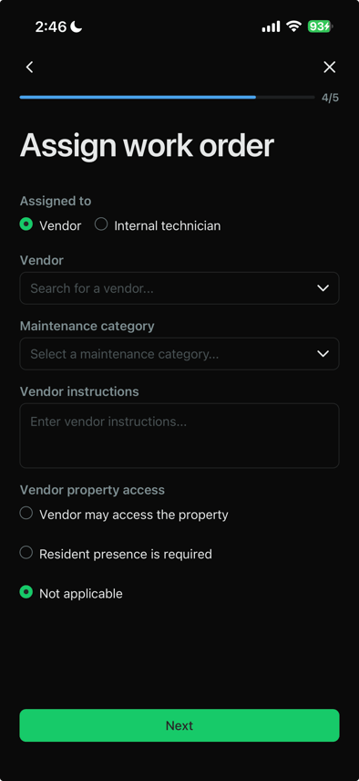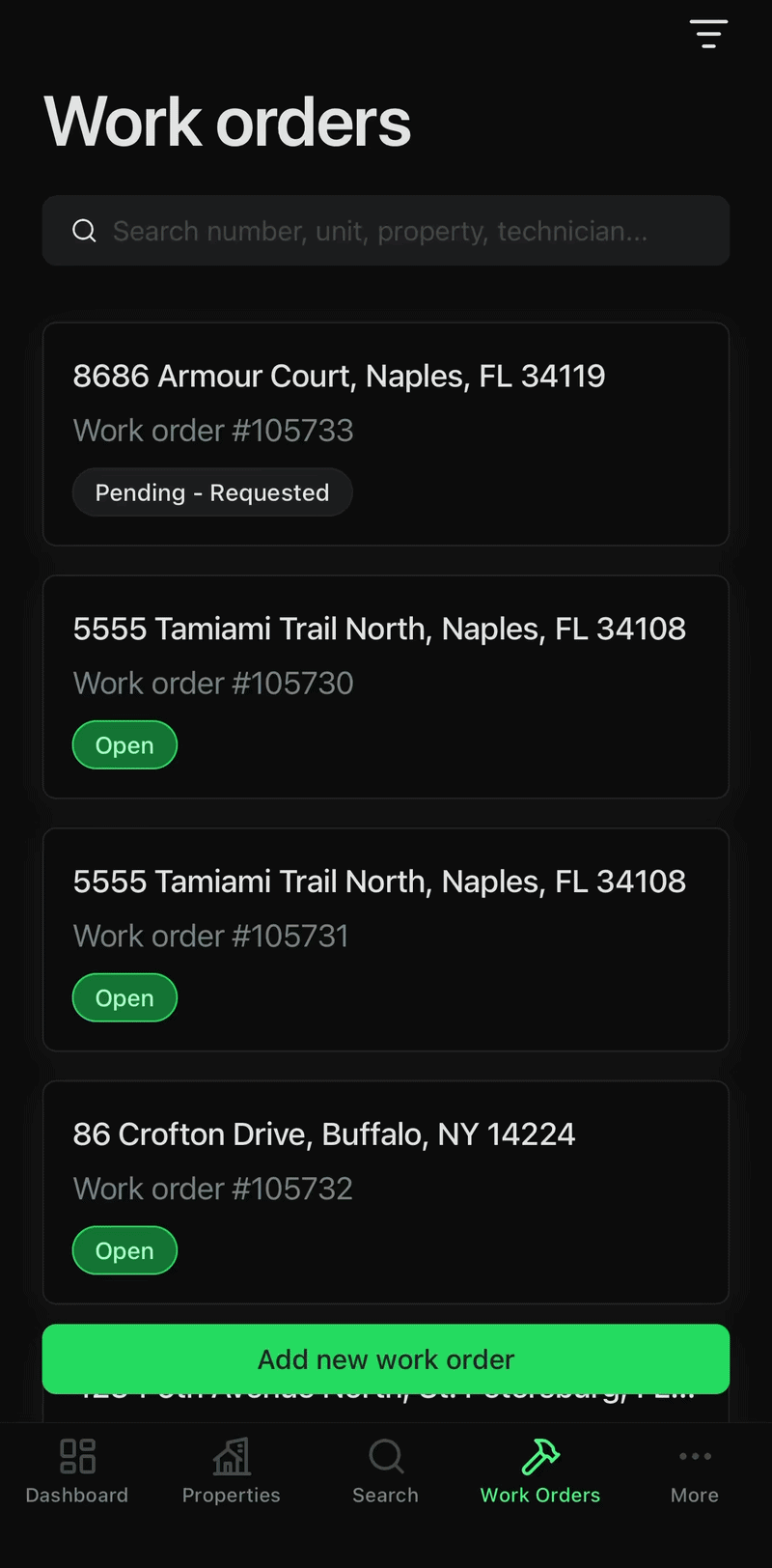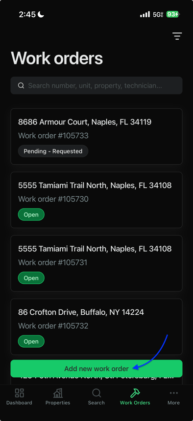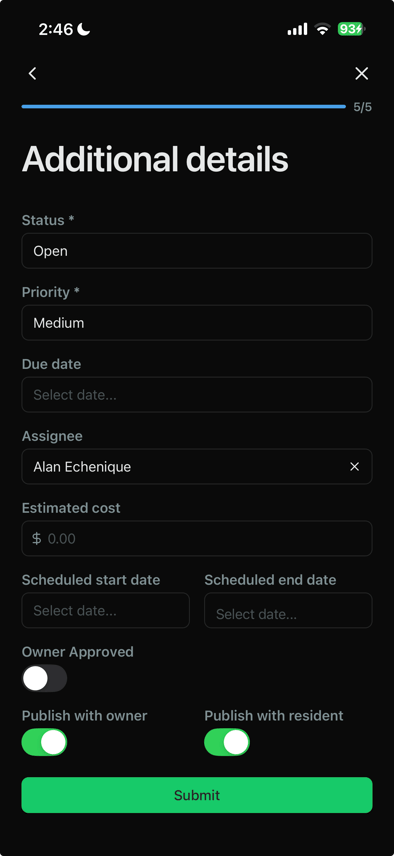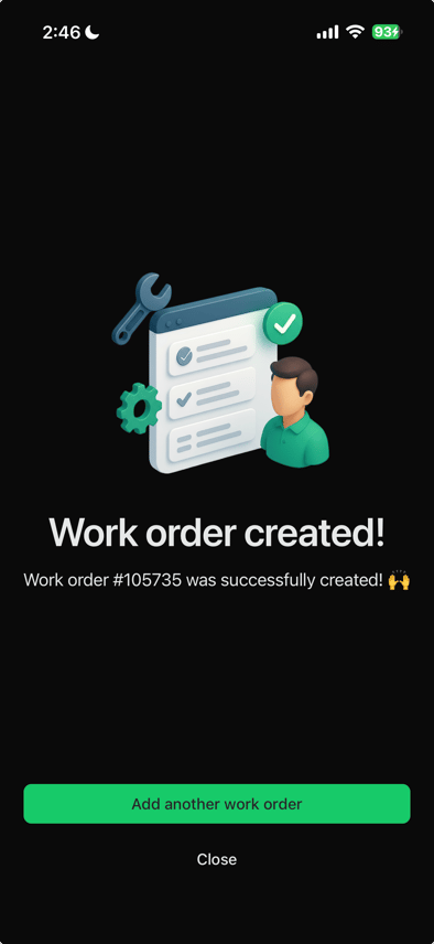 Additionally, you can create a Work Order from the app as well. Just follow the steps prompted on the app and fill in the required fields.