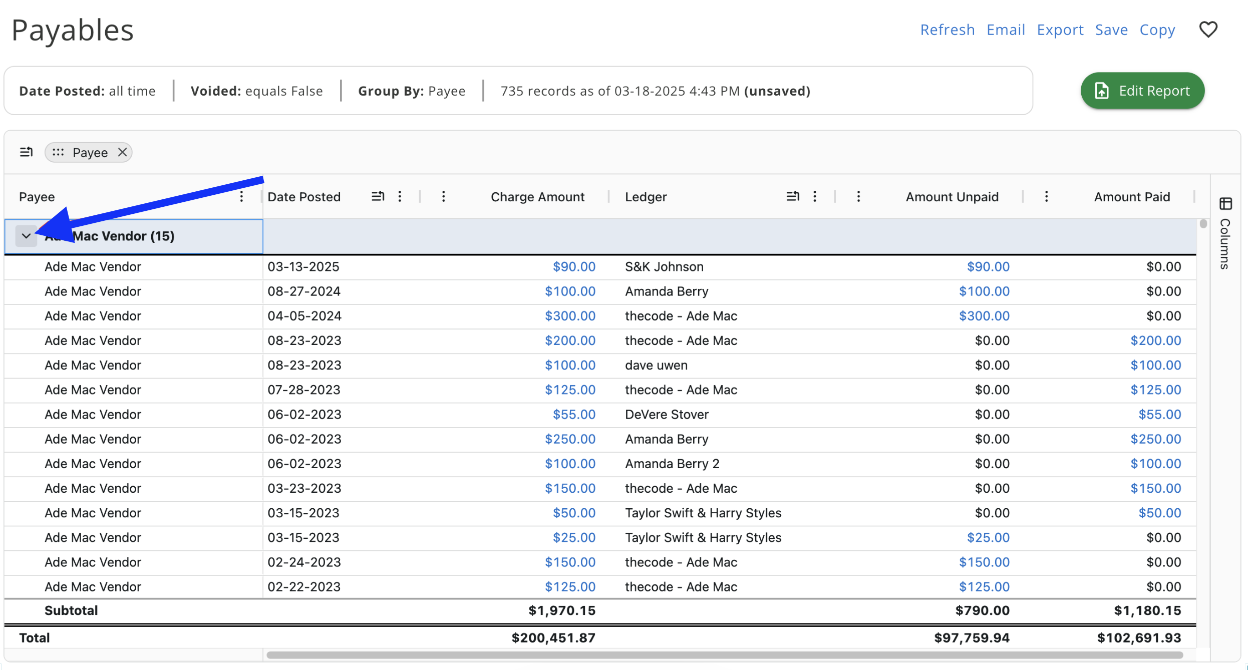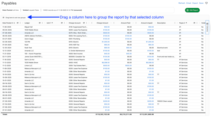 Another option to use the Grouping feature is by dragging and dropping the Column to the grouping icon at the top left of the report