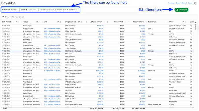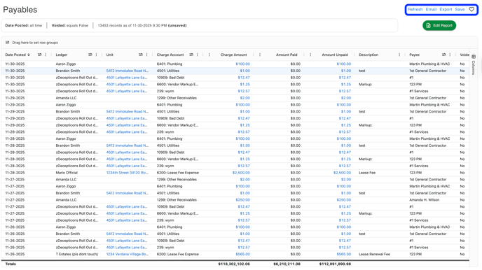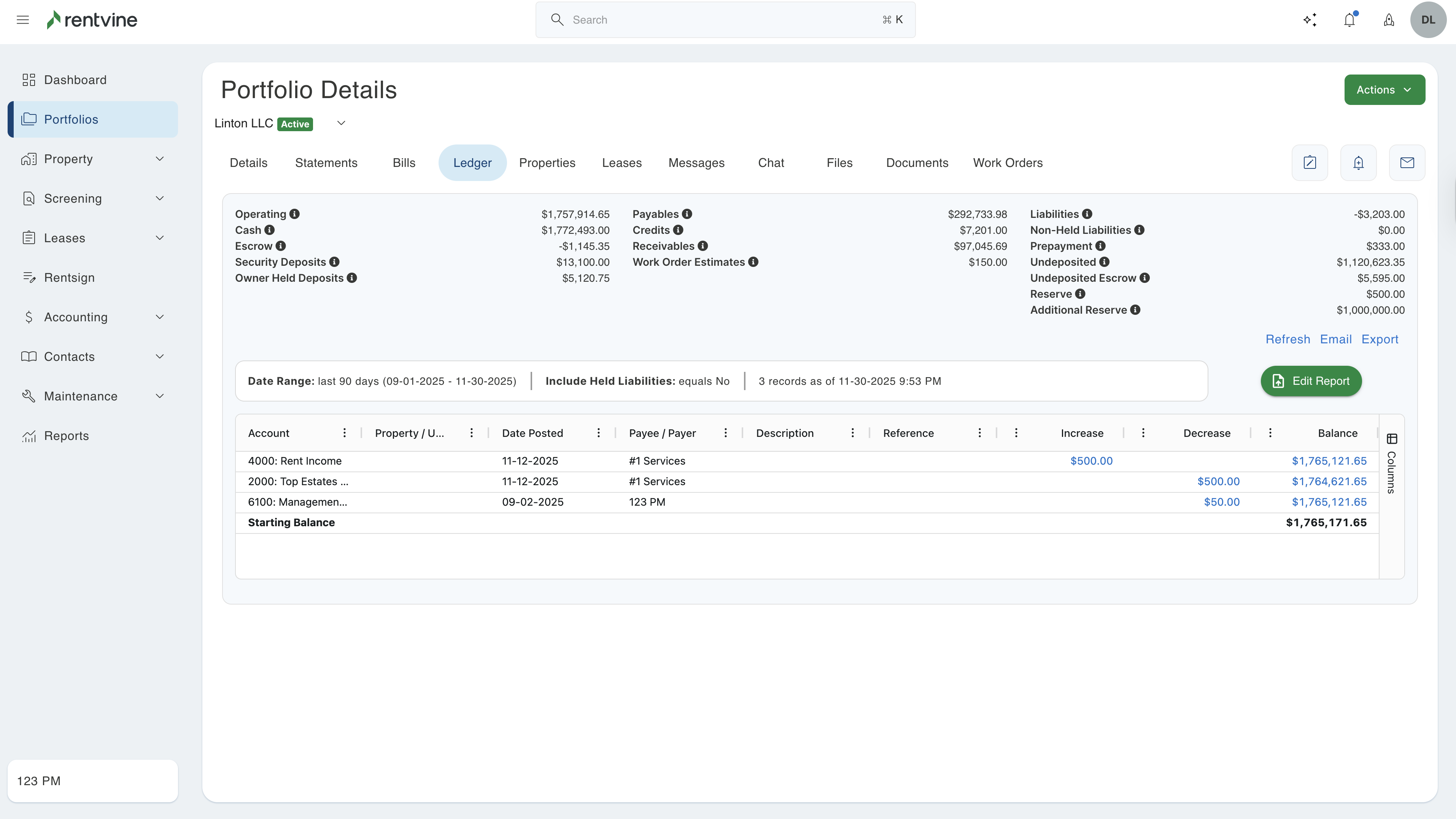 - This article will show the newly created reports and ledgers and how to navigate them in the Rentvine Software.