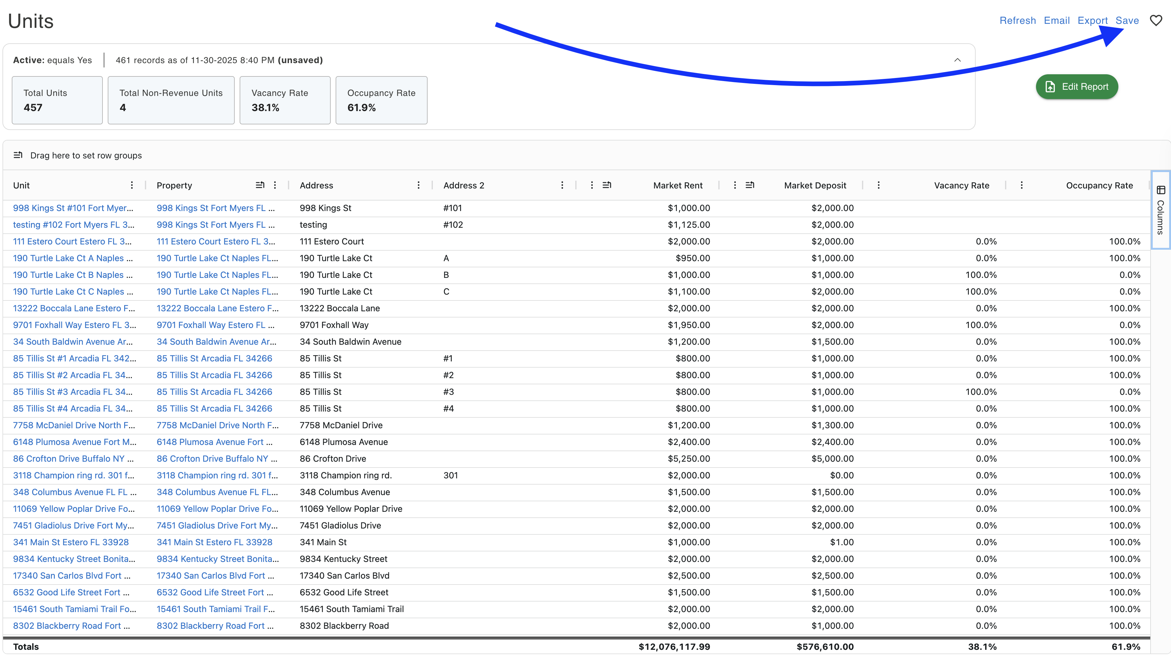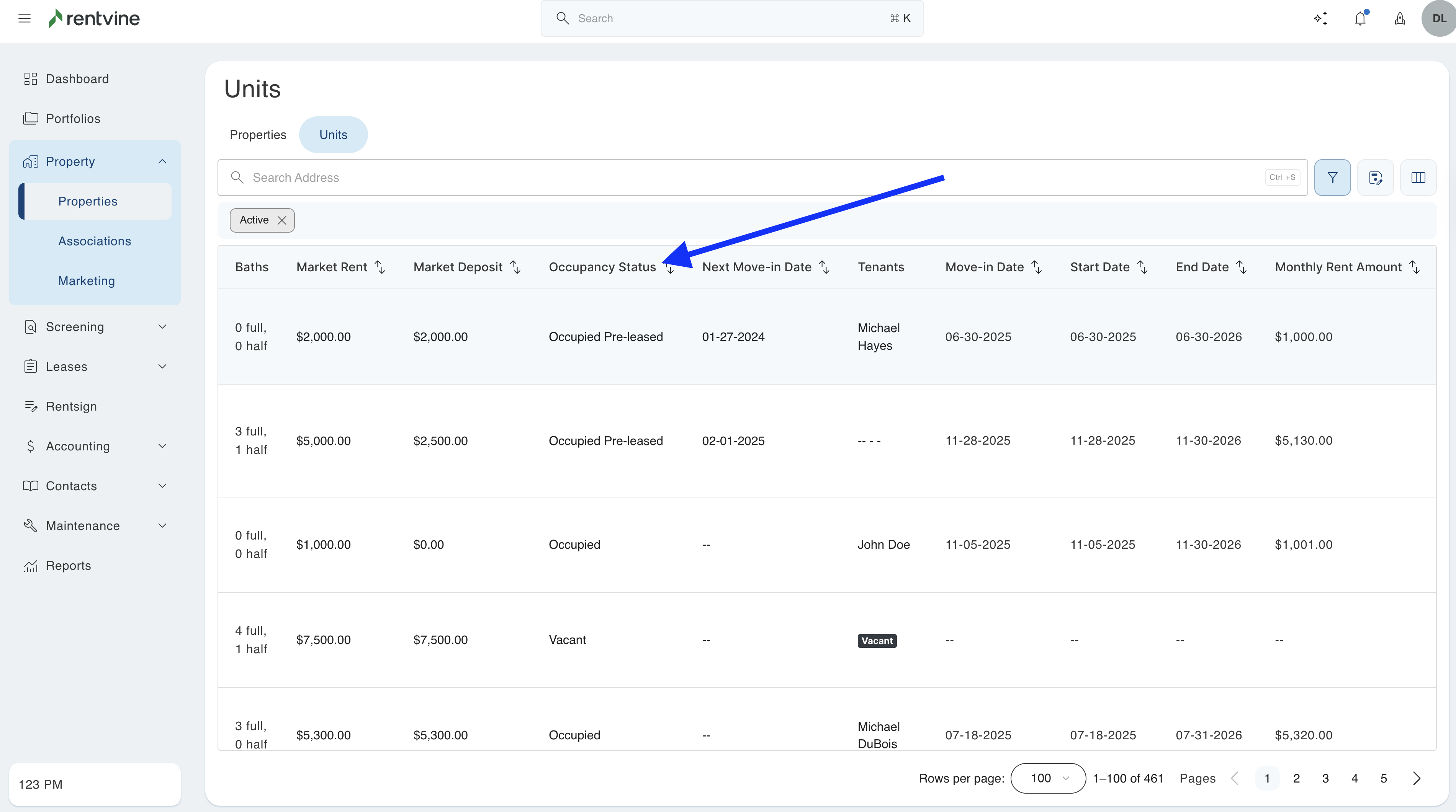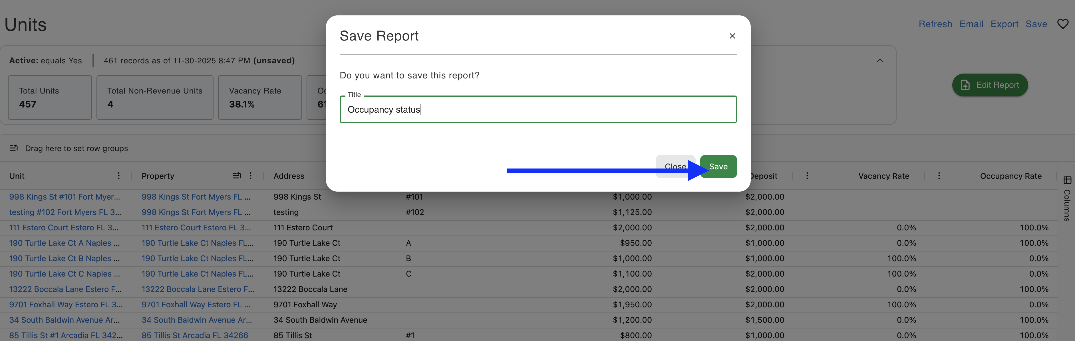This article will show you how to customize a Unit report to show you the occupancy status of each unit in your Rentvine account. The occupancy status can also be viewed on the unit list view page.