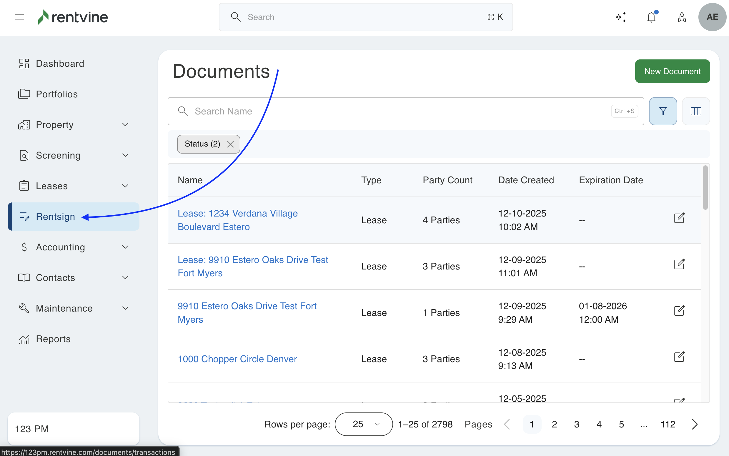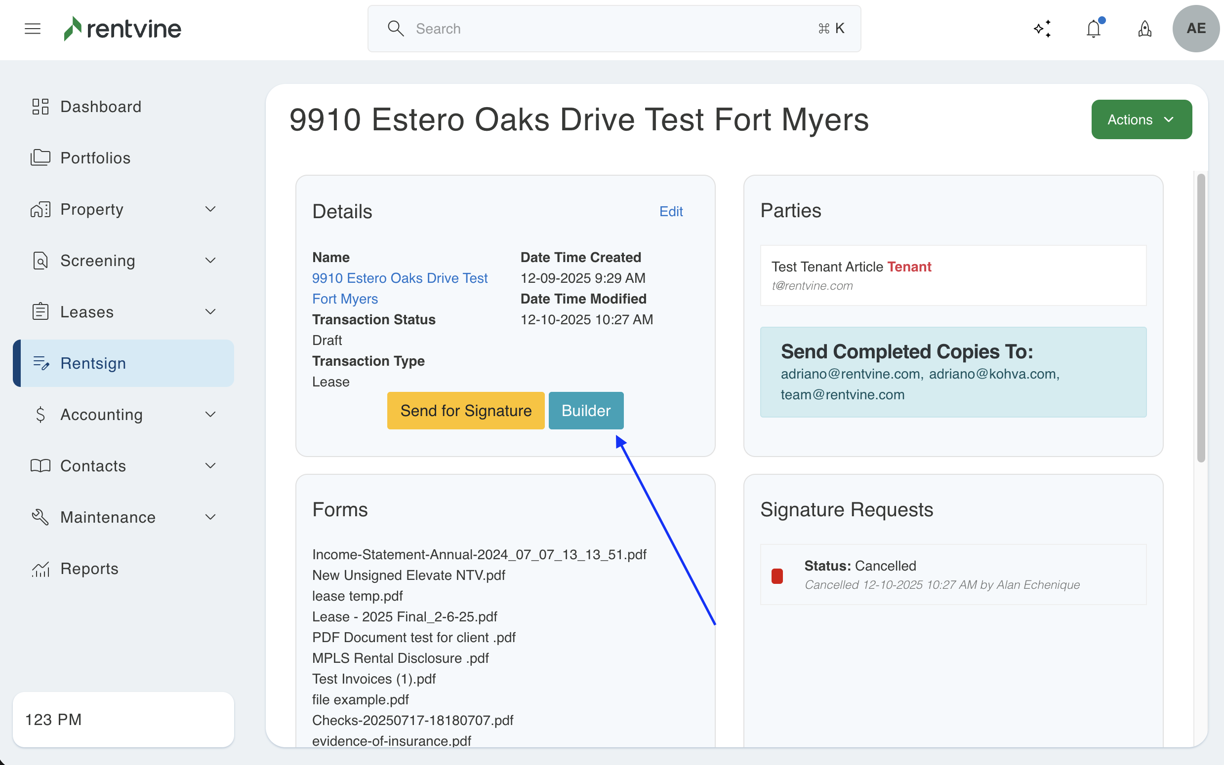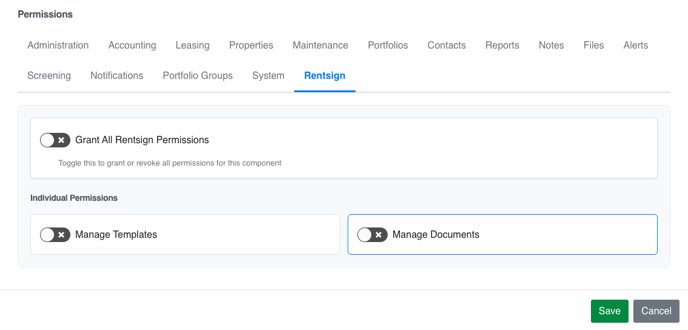 - Manage Documents - This allows the user to use the Rentsign builder on the individual Rentsign Documents sent