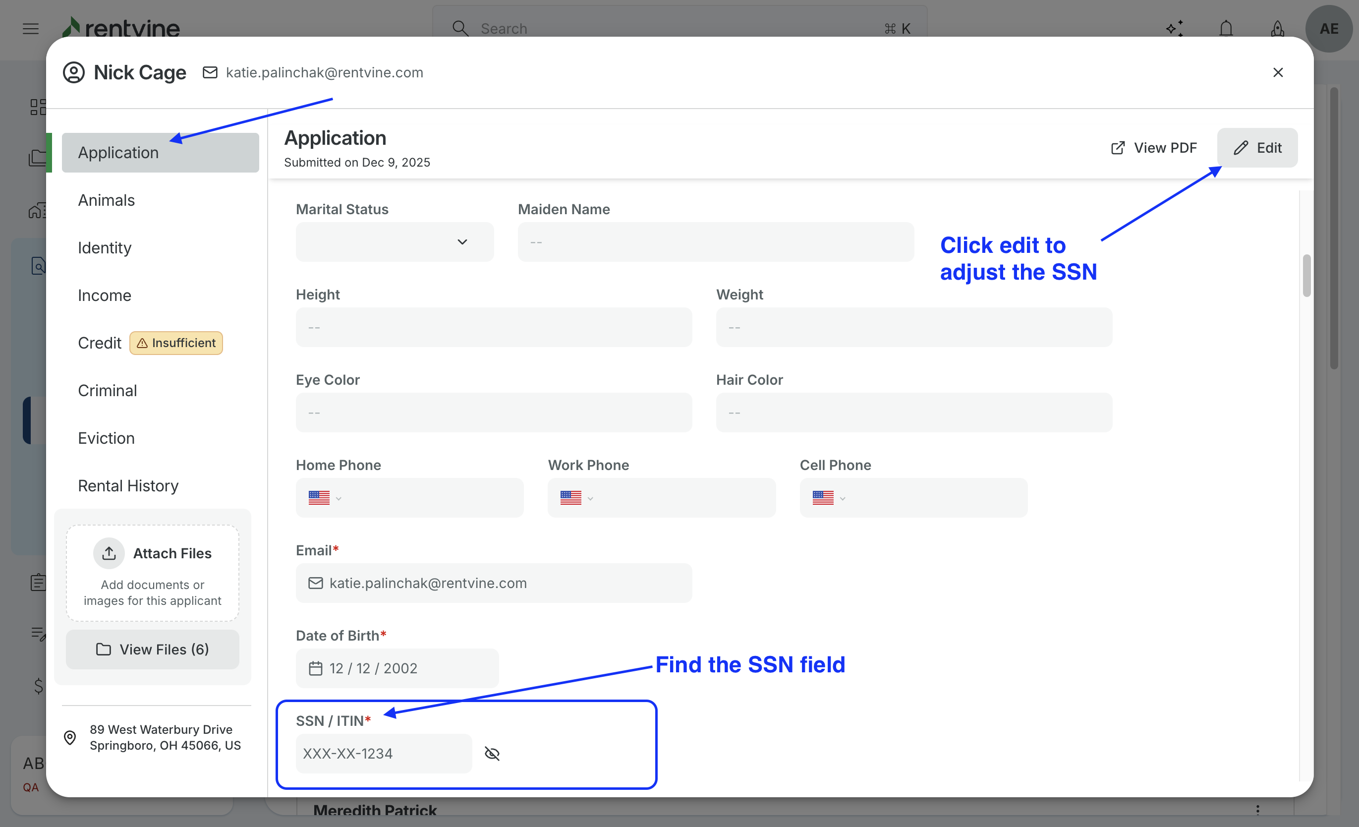 Where Do You Find, View and Edit Applicants SSN On The Application?