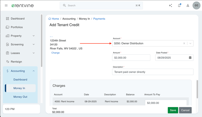 This article will go through the steps on recording a payment that was made by the tenant directly to the owner for rent outside of the system.