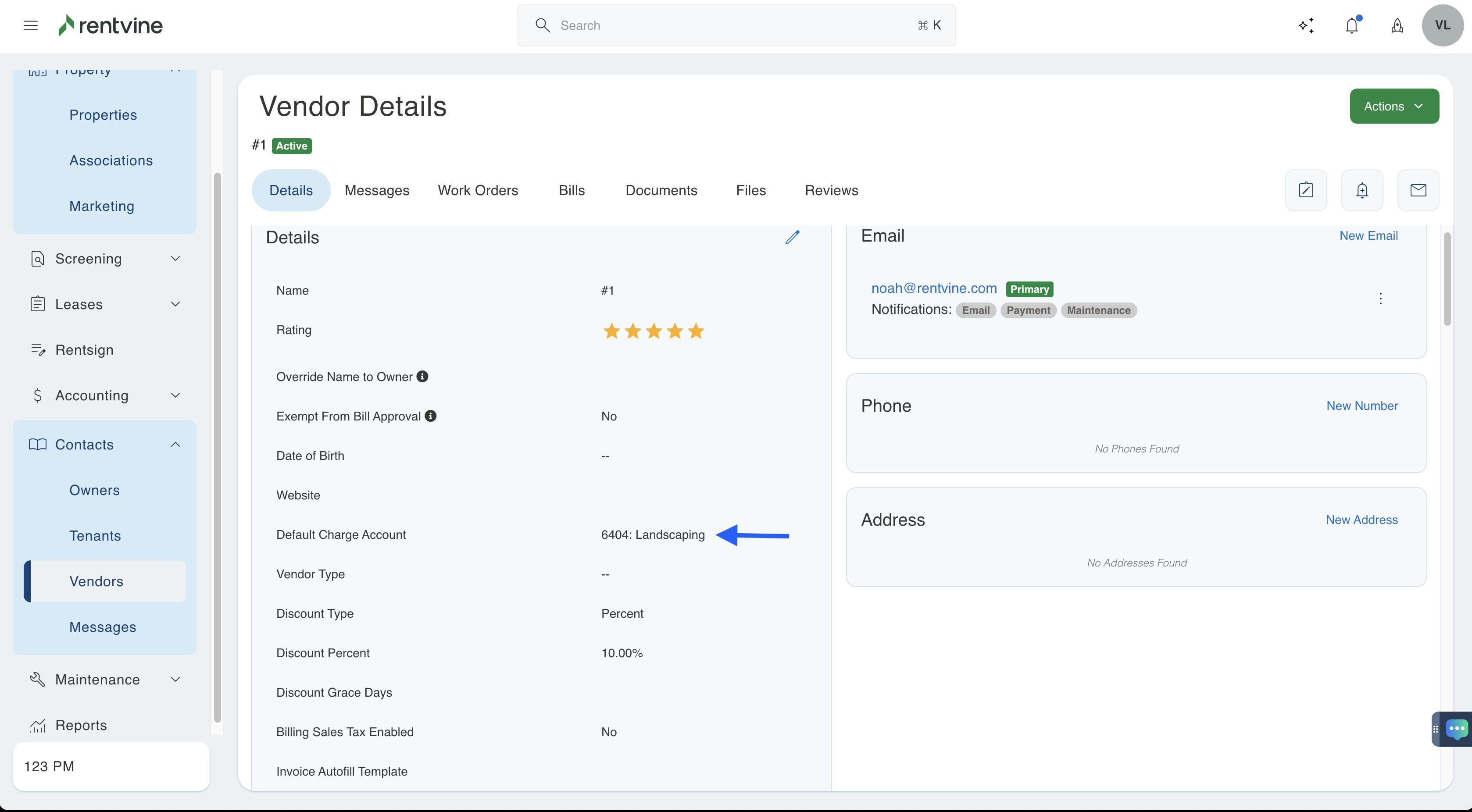 - If you are using a new vendor that has not been created within your Rentvine account, you will have the ability to type in the vendor's name in the payee box. Rentvine will recognize that this is a new vendor and allow you to create a vendor contact straight from this page.